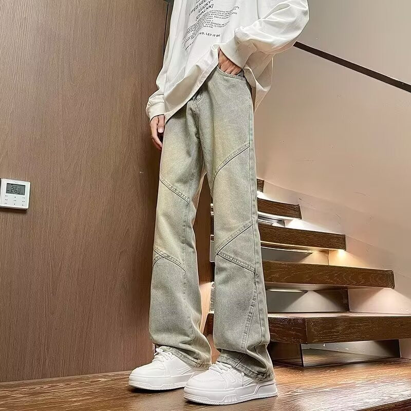 Crafted from premium denim fabric, these jeans feature unique patchwork details and a vintage wash finish. The relaxed fit ensures all-day comfort, while the retro hue and tailored seams add a touch of artistic edge to your wardrobe.